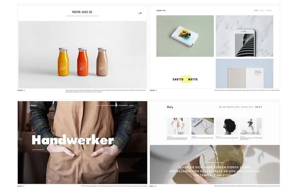 Weil sich Squarespace an ein Publikum wendet, das gerne alles alleine machen möchte, entwickelt das Squarespace-Team stetig neue “Templates”, also vorgefertigte Websites, mit denen du anfangen kannst.